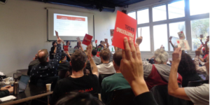 Die beiden Resolutionen wurden nach einer lebendigen Debatte zu den Änderungsanträgen der verschiedenen Sektionen deutlich angenommen. Die verabschiedeten Resolutionen, die in einem einjährigen Prozess unter Beteiligung aller Sektionen gemeinsam erarbeitet wurden, zeigen, dass die interne Demokratie der Partei sehr gut funktioniert.